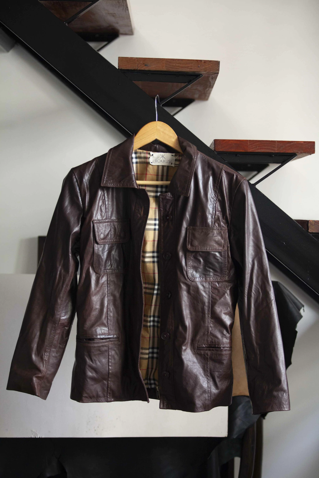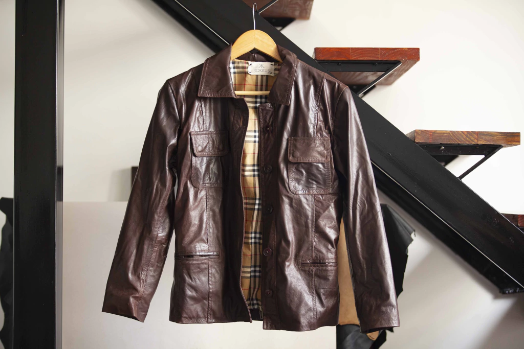 Campera de cuero de cabra napado.